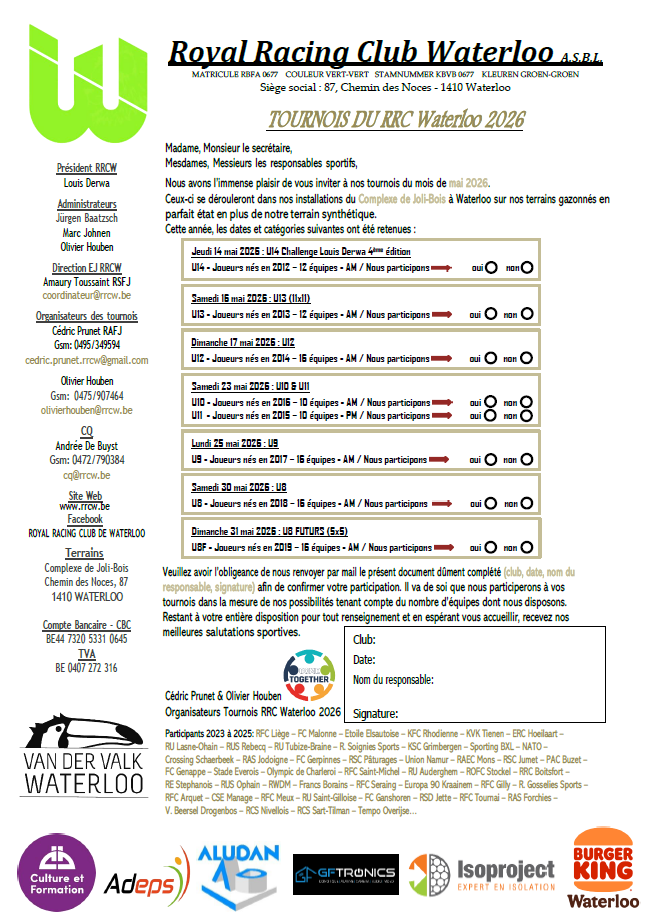 Nos dates de tournois 2026 !